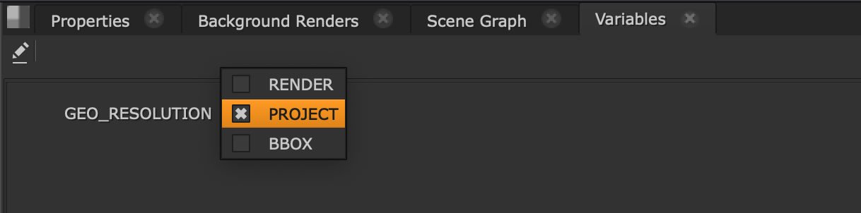 To work with Graph Scope Variables, simply set up a Variable in your Project Settings. In the example below, we are setting a Variable to change the resolution of the geometry of our 3D scene and have given three different values.