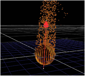 The ParticleVortex node applies a circular force to the particles and attracts them to an imaginary line, thus creating a whirlpool of particles.