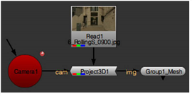 | 2. | Connect the solved Camera node to the Project3D cam input. |