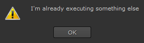 • Render using frame server - enable this checkbox if you want to use Nuke's frame server to render the frames specified in the current render task. When the frame server is disabled, Nuke can only perform one render task at a time. Executing another render displays a warning and the current render is paused until you acknowledge the message: