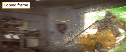 Here is an example of the difference between frame-copy and frame-blend interpolation. In the first frame of the figure below, you see a copy of the preceding frame. In the second frame, you see a new image generated by blending the previous and subsequent frames.