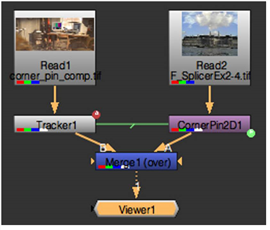 | 4. | Attach the image or sequence to replace the feature tracked to the input of the CornerPin2D node. |