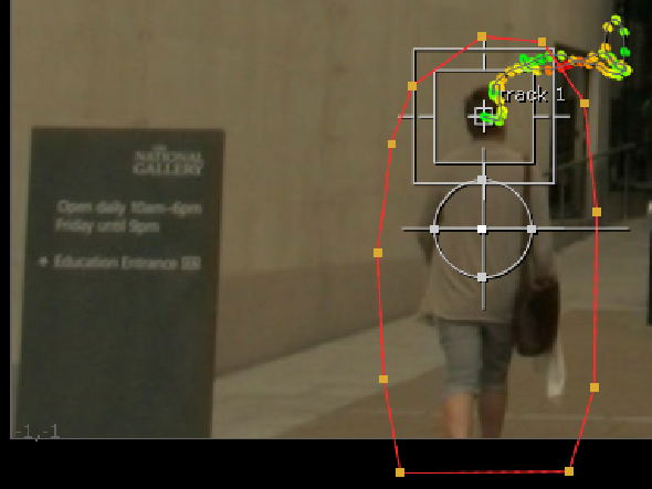 | 1. | Track a feature in the area you intend mask. In the example, the figure's head serves as the driving point for the matte. |