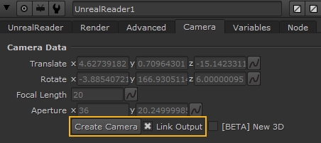 Note:  UnrealReader cameras are compatible with the classic Nuke 3D system by default. If you're working in the new USD-based 3D system, enable the New 3D checkbox to create a camera compatible with the new system.