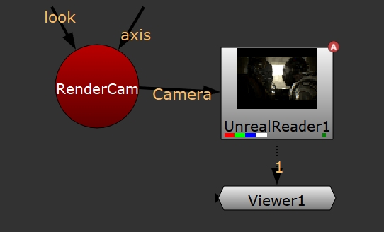 10. In Nuke, create an UnrealReader node and connect it to a Viewer.