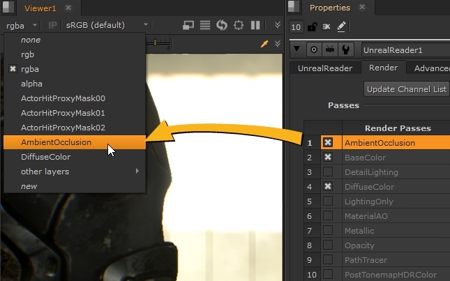 Selecting Unreal Maps in Nuke.