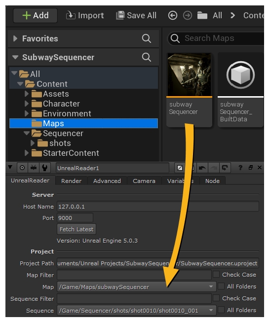 Choose Unreal Maps and Sequences in Nuke