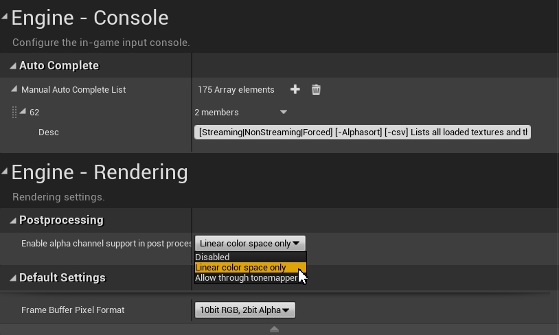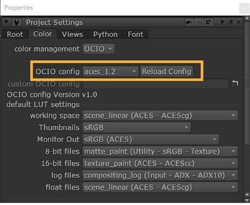 To set this up in Nuke, select the same file under Project Settings > Color > OCIO config to give access to those same desired color spaces as selected in Unreal Editor.