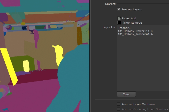 10. The Layer List works in the same way as Cryptomatte's layer picking system. See Using the Matte List for more information.