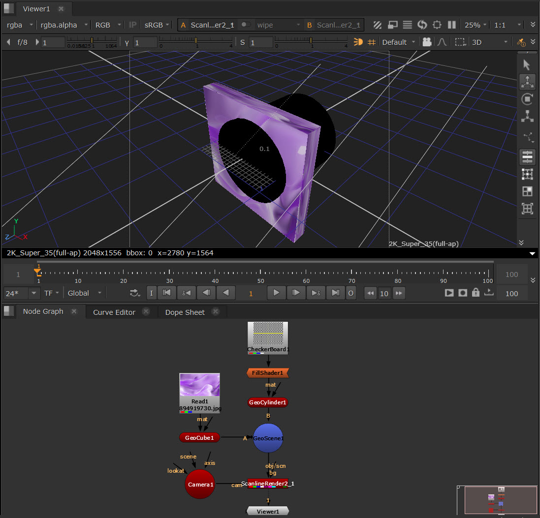 | 1. | Insert a FillShader node between the 2D image you’re using for the surface texture and the 3D object node that creates the surface. |