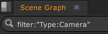 You can also apply filters by typing the syntax in the Scene Graph search bar. For example, for filtering by Type for Cameras, the syntax would be: