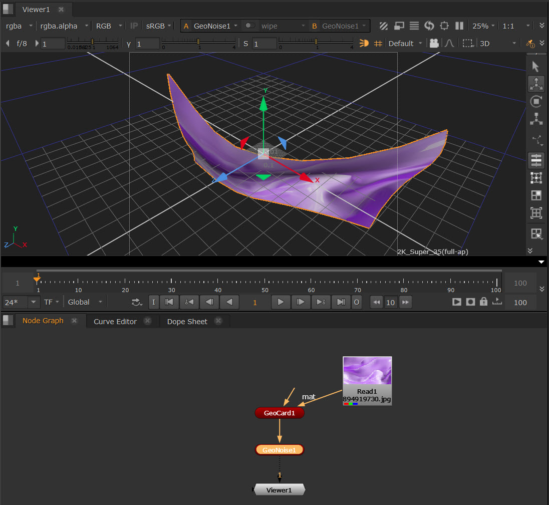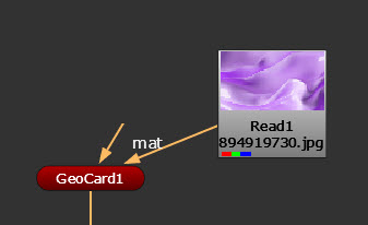 | 2. | Connect a texture image to your GeoCard using the Read node and its mat input. |