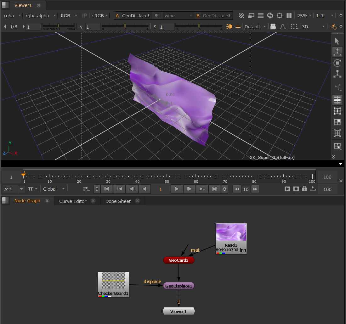 | 4. | Add a CheckerBoard node connected to the GeoDisplace nodes’ displace input. |