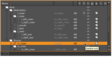 In this instance, enabling cookie-cut for the monkey’s head, m_head, also designates the lion’s head, l_head, as a cookie-cutter shape.