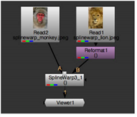 Finally, merge the output of the SplineWarp node with your sequence. A simple script might appear as follows: |