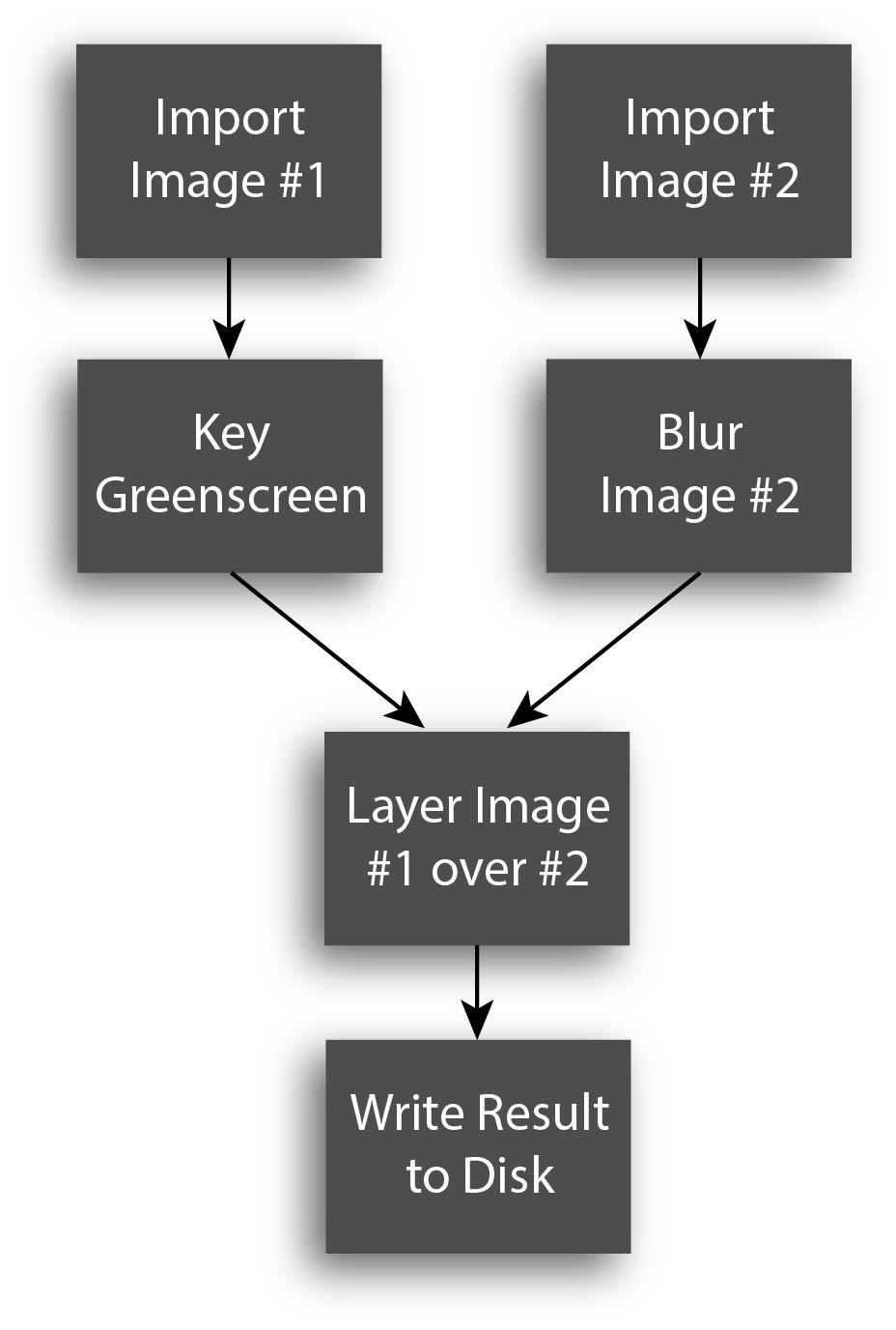 A Nuke project consists of a network of linked operators called nodes. Nuke's Compositing environment utilizes a node-based workflow, where you connect a series of nodes to read, process, and manipulate images. Each node in the script, or comp, performs an operation and contributes to the output.