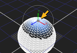 above the 3D Viewer and then select the target vertices or faces. Dragging the transform handle adjusts the selected vertices or faces along with the additional selections described by the falloff.