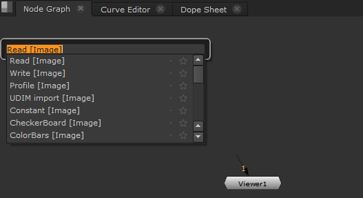 The Node Graph's Tab menu, opened by pressing Tab in the Node Graph, enables you to search for and add nodes easily using partial names. Commonly used nodes are weighted so that they appear higher up the list of choices and you can favorite nodes, pinning them to the top of the list. Weights and favorites can be enabled, disabled, and cleared in the Preferences under Behaviors > Nodes.