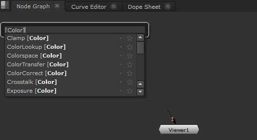 You can also search by toolbar menu name. For example, if you know that you're searching for a color correction node you could enter [Color].
