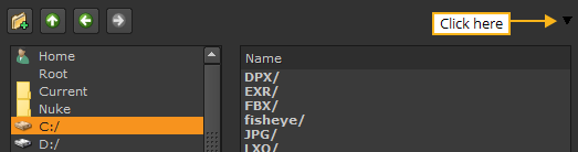 | 1. | Click the black arrow in the top right corner of the file browser. |