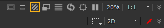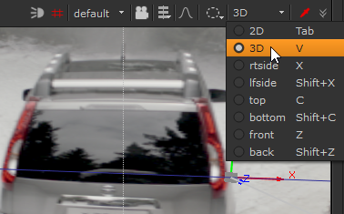 The 2D / 3D dropdown menu lets you toggle between 2D and 3D display modes in the current Viewer. This menu also lets you choose between different orthographic (non-perspective) views when working in the 3D mode.