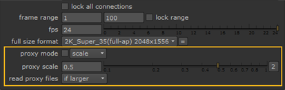 You can also read in rendered proxies using the Read nodes’ controls. The proxy file does not need to match the proxy resolution in use. Depending on your settings, either the full-res or proxy file is scaled to the required proxy size. For more information, see Read Nodes and Proxy Files.