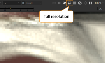 However, if you play through a sequence and then pan around or change the zoom level, Nuke has to calculate the scanlines it didn’t calculate before. This may not be what you want if you are performing tasks that require you to constantly pan around or zoom in and out of the plate (such as paint and roto). If this is the case, you can click on the full frame processing button in the controls at the top of the Viewer to force Nuke to process every scanline in the image. Compared to the default mode, this may take slightly longer initially and requires more space in the Viewer cache, but once Nuke has cached the frames you require, you can pan around and change the zoom level without breaking the cache or affecting playback.