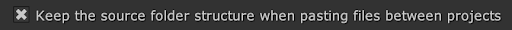 Users can choose to paste items to the root of the folder, or keep the same folder structure of the original project. This behavior can be managed in the Preferences panel, in the Panels > Project Items section.