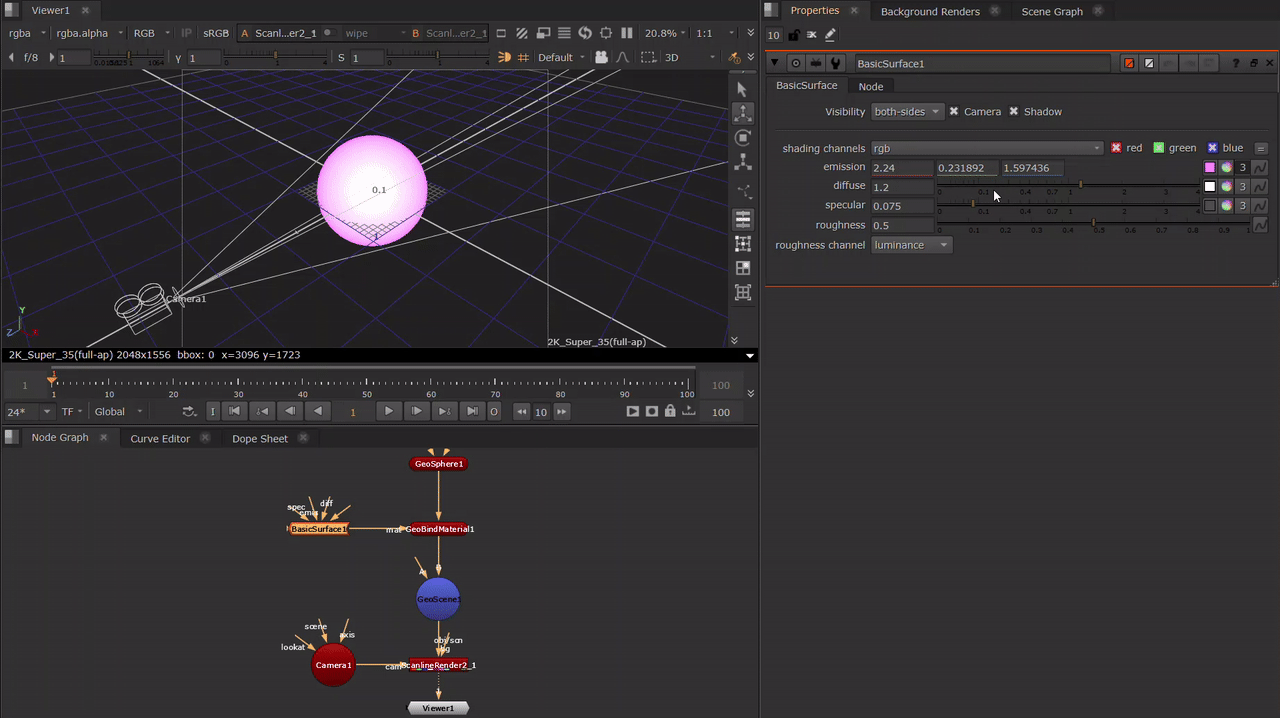 Create advanced shaders in Nuke. Generate mirror-like reflections, translucency, and transmission with ScanlineRender's ray tracing using the new ReflectiveSurface node. Learn more at ReflectiveSurface: Generating Reflections.