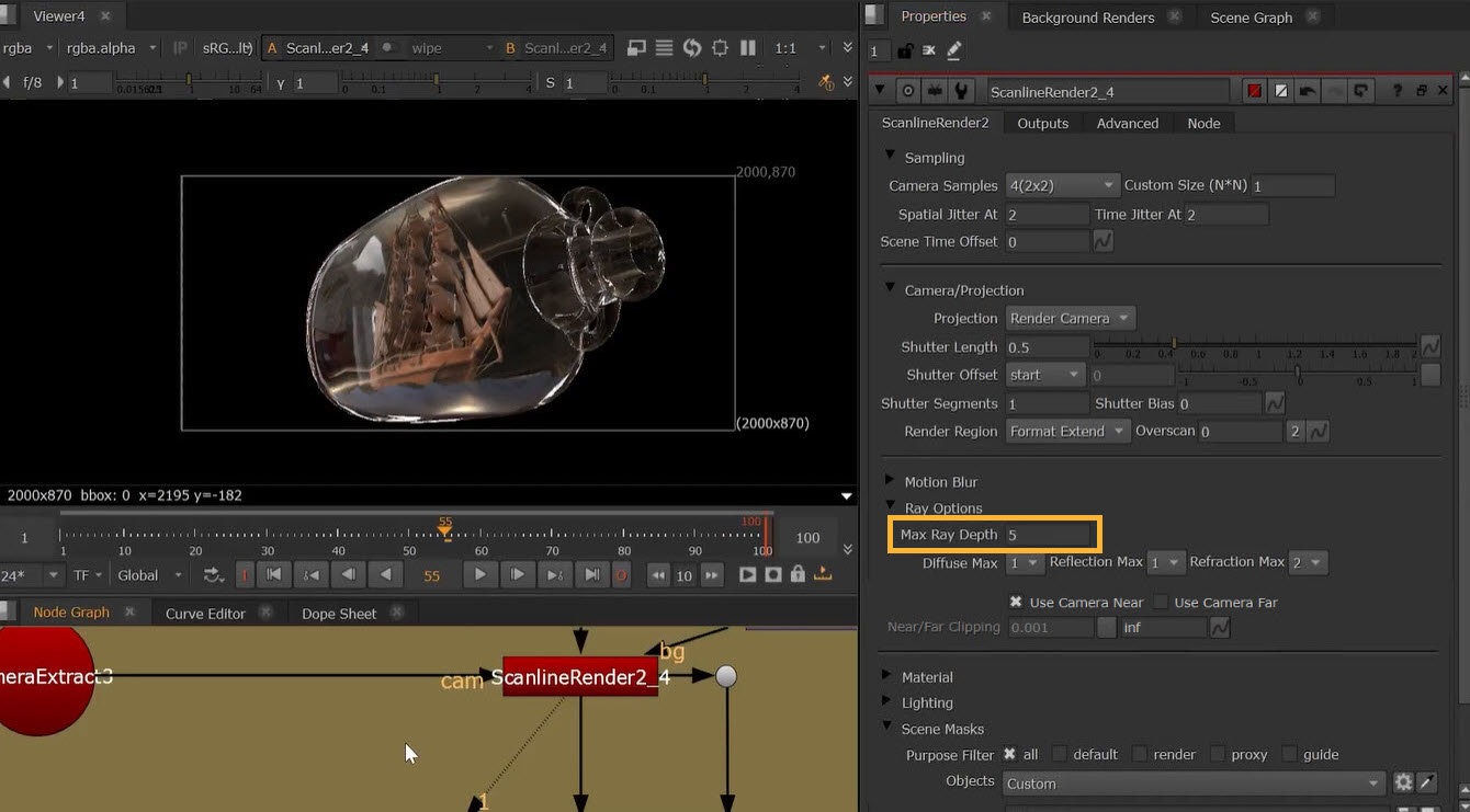 Create more realistic reflections and refractions with ScanlineRender’s new Ray Options.