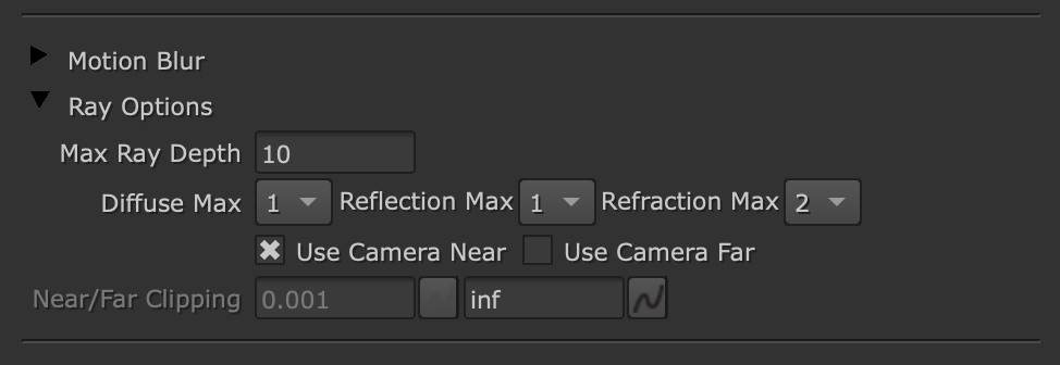 Toggle the Use Camera Near and Use Camera Far checkboxes to set custom near and far clipping planes for rendering.