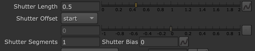 Take more control over shutter behavior with new Shutter knobs. Specify the open duration with Shutter, and when it should be open or closed relative to the current frame value with Shutter Offset. Use Shutter Segments to determine the number of time segments for motion blur, and Shutter Bias to bias shutters towards closed or open for stylized motion blur.