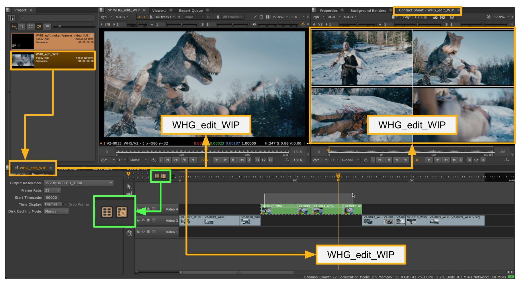 If you now want to have this NEW sequence populate the Contact Sheet you just need to click the Send To Contact Sheet button on the WHG_edit_WIP and this sequence will now replace the previously loaded one.