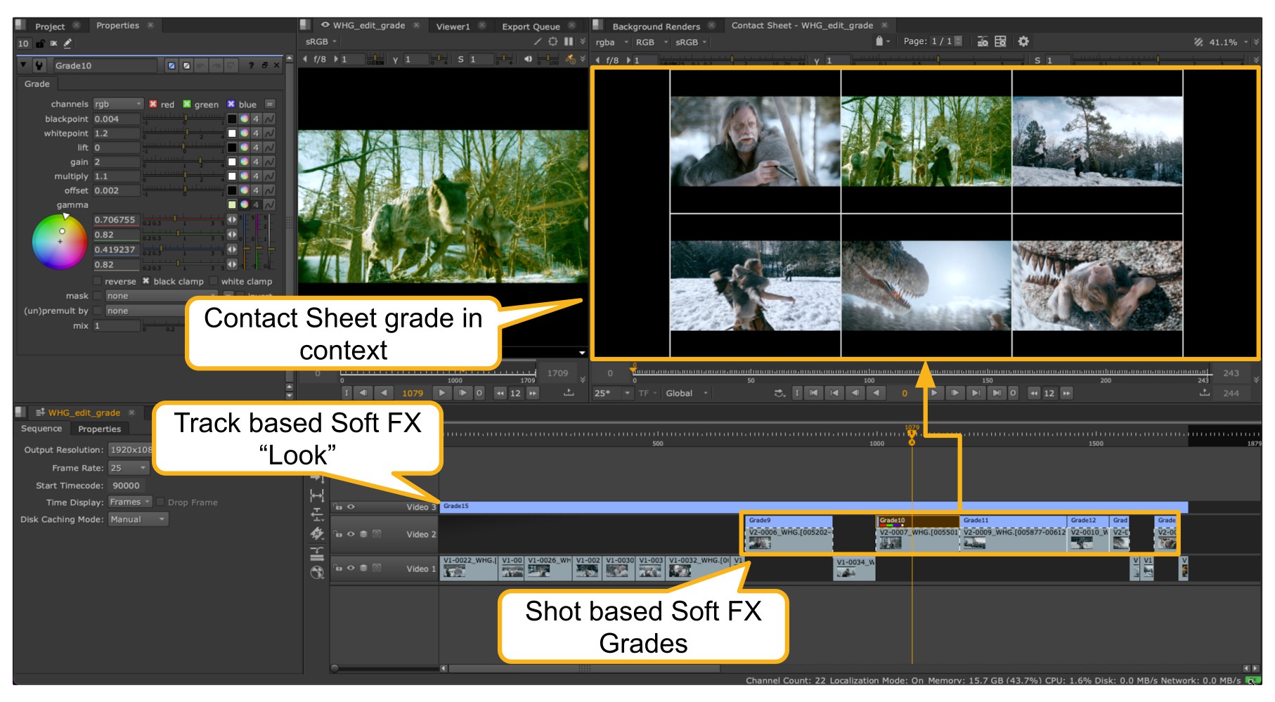 Another really useful workflow in Contact Sheet is the ability to display multiple shots that have clip-based and layer-based Soft Effects.