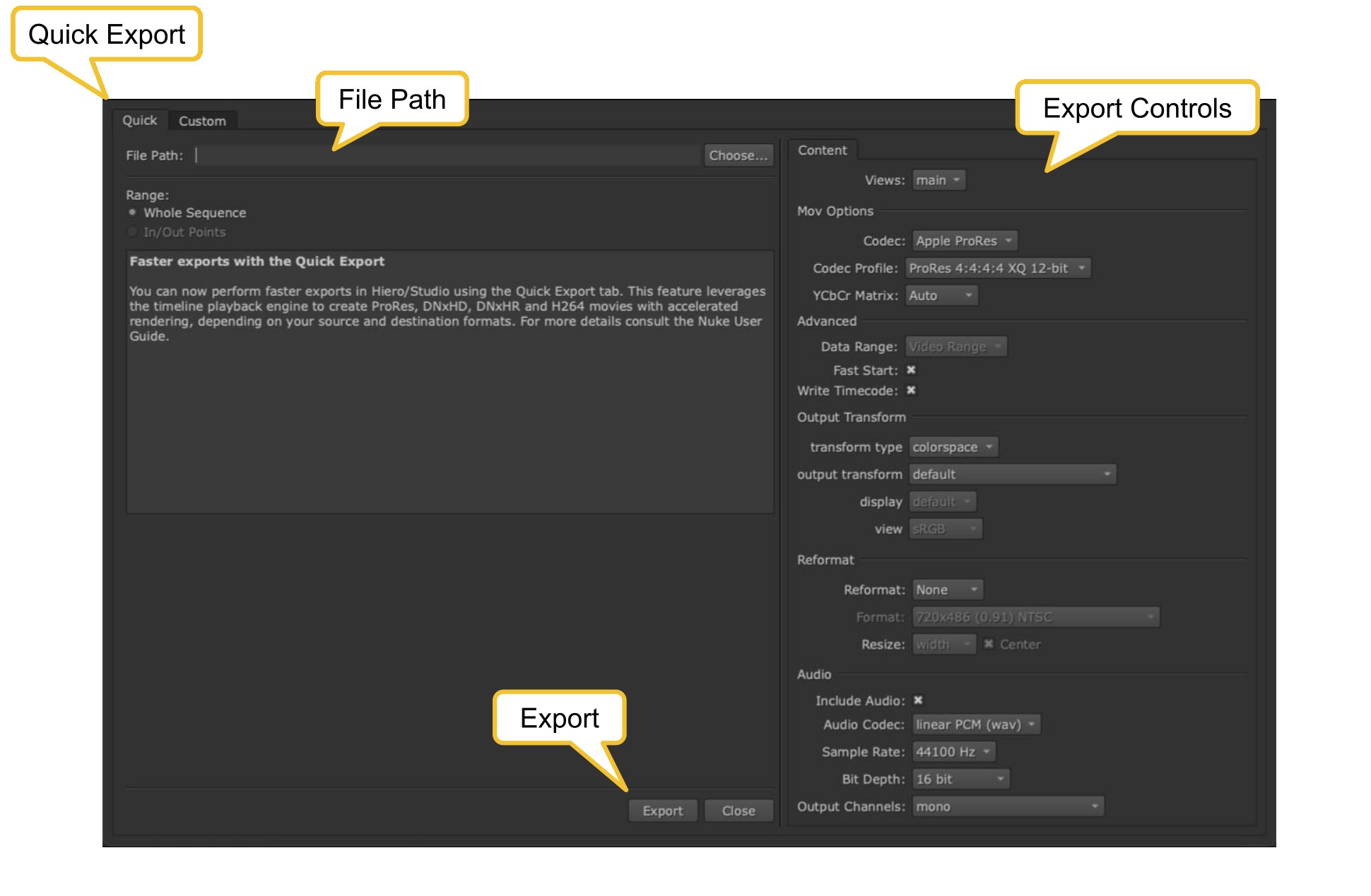 Note: See more about export options at Exporting from Nuke Studio.