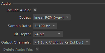 • Delete Audio File - when disabled, delete the .wav file used to create the export. This control only applies to formats that support audio, such as .mov files.