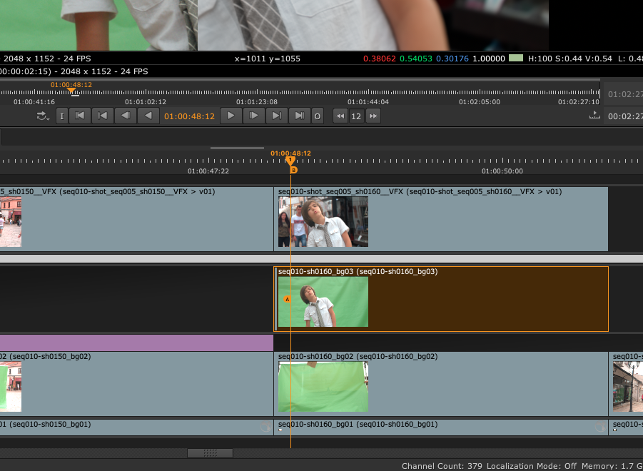 Note: If you're working in a multi-view project, using stereo footage for example, you can set which view is output in the A and B buffers using the Views buttons over the Viewer. See Displaying Views in the Viewer for more information.