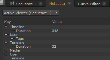 To view metadata for a shot, select the Metadata tab in the timeline panel and click on the item to examine.