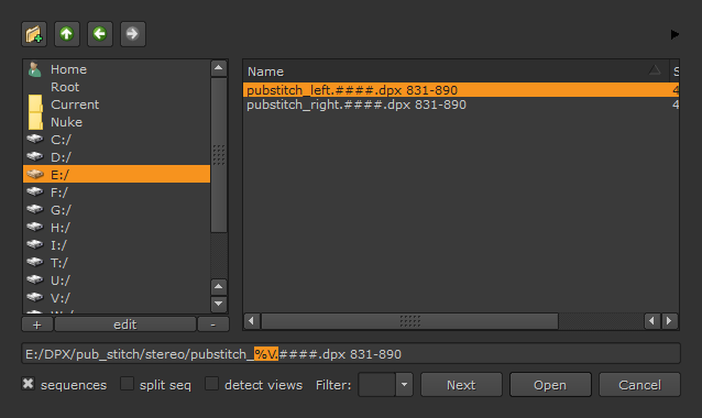 | 2. | Locate a multi-view file, for example pubstitch_stereo.####.exr |