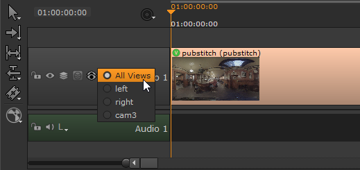 Selecting a particular view for a track in the timeline, such as left, means that only the left view is visible in the Viewer for that track.