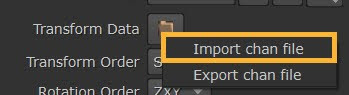 You can also apply tracks to prims. Nuke can import channel files and apply the motion data to the transformation parameters of any prim. To do this you can use the Transform Data button and select Import chan file.