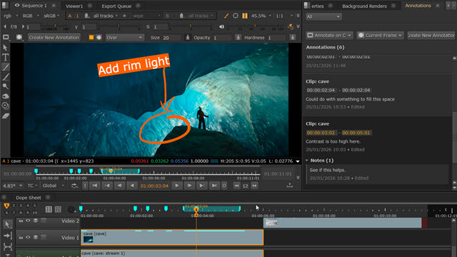 The Annotations Panel and Annotations Toolbar allow you to add comments and drawings to your clips and sequences in the Viewer.
