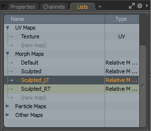 | 3. | 打开Lists标签,展开Morph Maps项目,然后选择Sculpted。 |