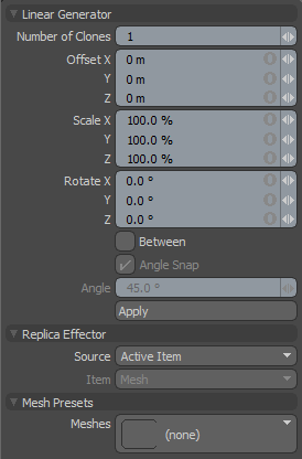 克隆也可以作为过程网格操作使用。它是“克隆效应器”和“线性生成器”子工具的组合。