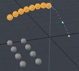 的Curve Clone工具可让您通过单击曲线的控制点来快速克隆几何。克隆的元素由Source的选项Clone Effector。创建曲线时,指定的几何图形会沿曲线实时复制自身(取决于系统性能)。您可能要从预先创建的曲线开始;只需在激活工具之前将曲线放入可见但未选择的“网格项”(也称为Background项目)。使用该工具创建曲线的第二个顶点后,克隆效应器将使用各种控件沿其创建几何。