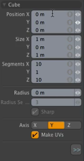 | 2. | 打开工具箱Basic标签,选择Cube,设置网格的属性,然后单击Apply。下图显示了示例属性。 |