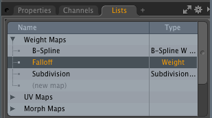 | 2. | 来自Vertex Map菜单,选择Falloff Weight Tool。 |