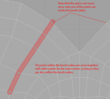注意:  只要笔刷半径内的UV点也位于笔刷半径内,就可以将其与其他点缝合在一起。