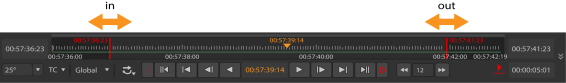 当播放头位于In和Out标记附近时,时间码刻度的上半部分控制播放头,下半部分控制标记。